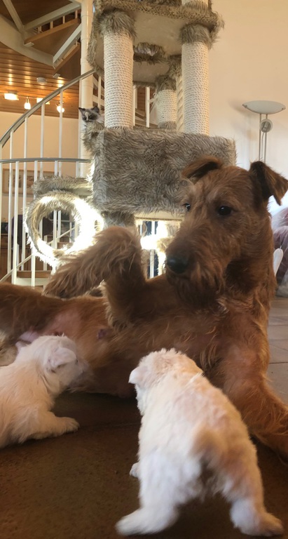 Unsere Honey hat am 23.08.2024 ihren Wurf bekommen. Vater ist Multi Champion Bogarhazi INNOCENT LOVE CIB, CZ GrdCh, DE Ch KfT, DE Ch VDH, AT Ch, CZ Ch, SI Ch, RS Ch, BA Ch, CZ KlCh, DE JCh KfT, CZ JCh, DE JCh VDH, AT JCh. Den Welpen und Honey geht es prächtig. Honey hat ihre erste Geburt mit Bravour gemeistert und die Kleinen wachsen und gedeihen.